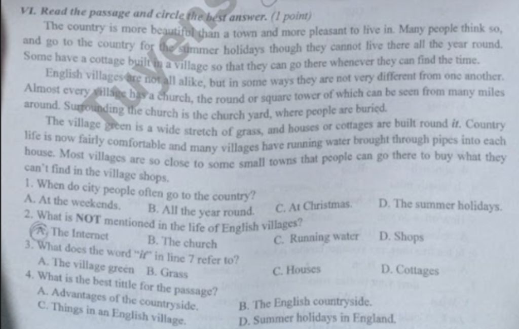 `-` Dẫn chứng: Many people think so, and go to the country for the immer holidays though they cannot live there all the year round.