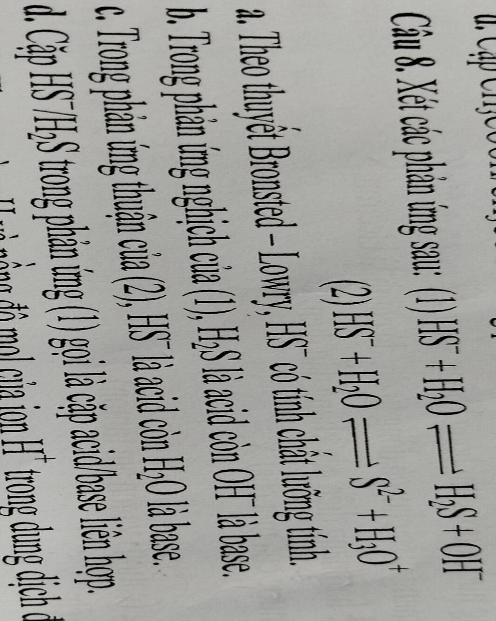 Câu 8. Xét các phản ứng sau: (1) HỒ +HO=HS+OH