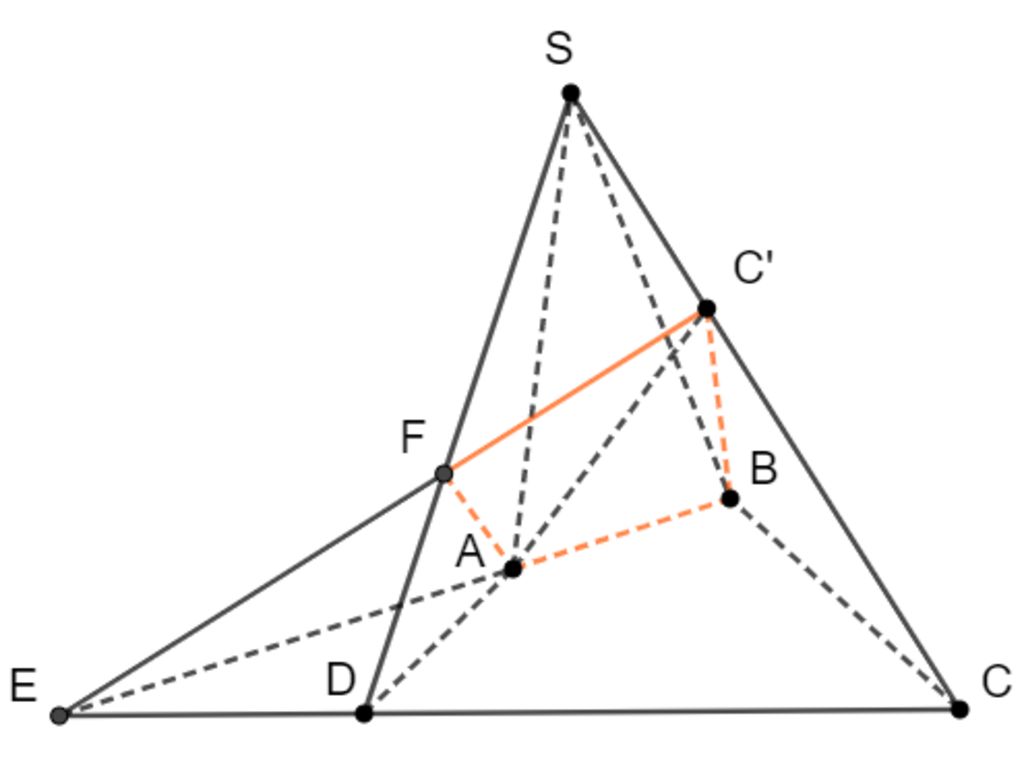 Nối `EC'` giao với `SD` tại `F`, nối `AF`.