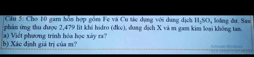 `b,` Từ PTHH : `n_{Fe}=n_{H_2}=0,1(mol)`