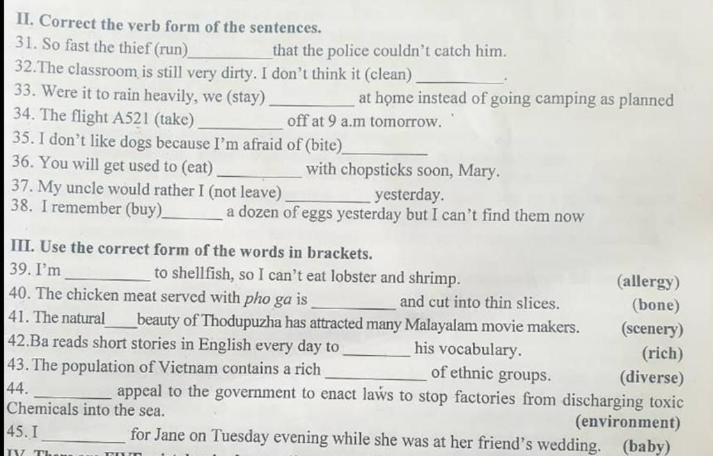II. Correct the verb form of the sentences.