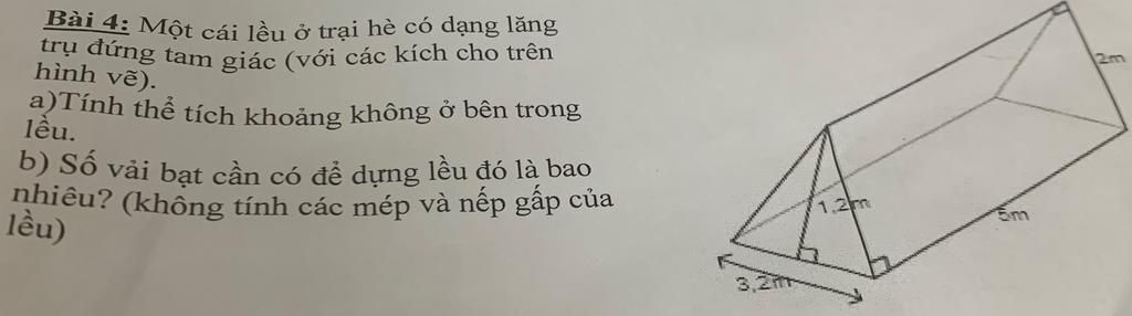 Bài 4: Một cái lều ở trại hè có dạng lăng