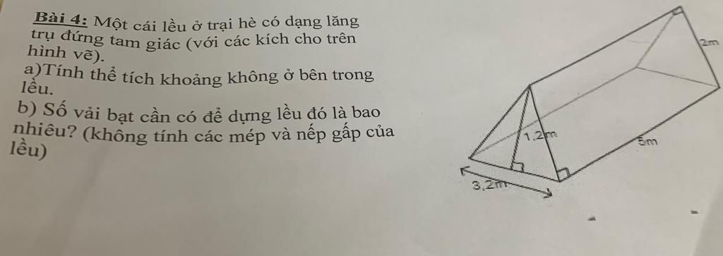 Vậy a)Thể tích khoảng không ở bên trong lều là 9,6 m³.
