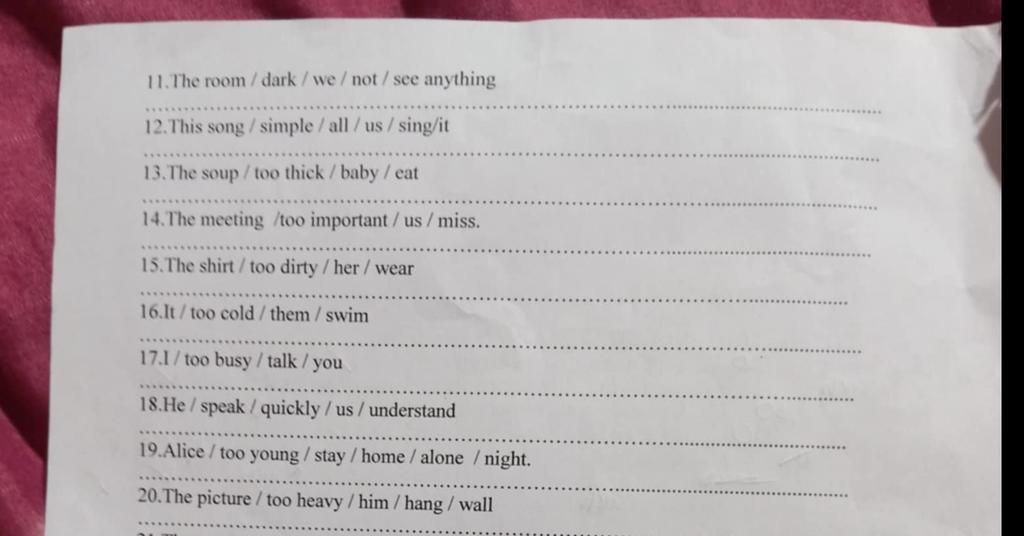 11. The room/dark/we/not/see anything