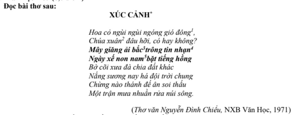 Câu 8. Những hình ảnh thiên nhiên nào bộc lộ tình cảnh đất nước trong hai dòng thơ in đậm.