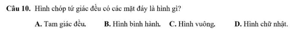 `+`Bốn mặt bên là hình tam giác cân(Vì các cạnh bên bằng nhau)