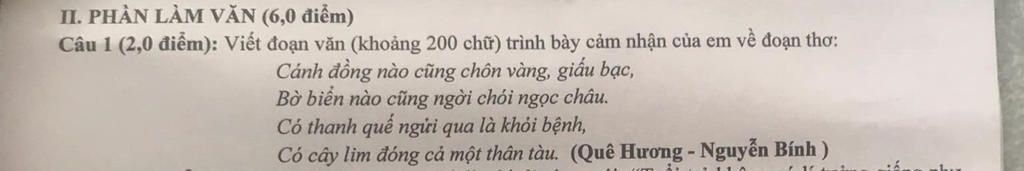 Câu 1 (2,0 điểm): Viết đoạn văn (khoảng 200 chữ) trình bày cảm nhận của em về đoạn thơ: