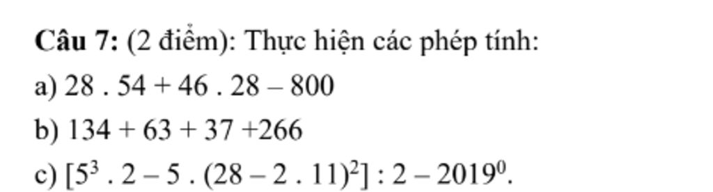 Câu 7: (2 điểm): Thực hiện các phép tính: