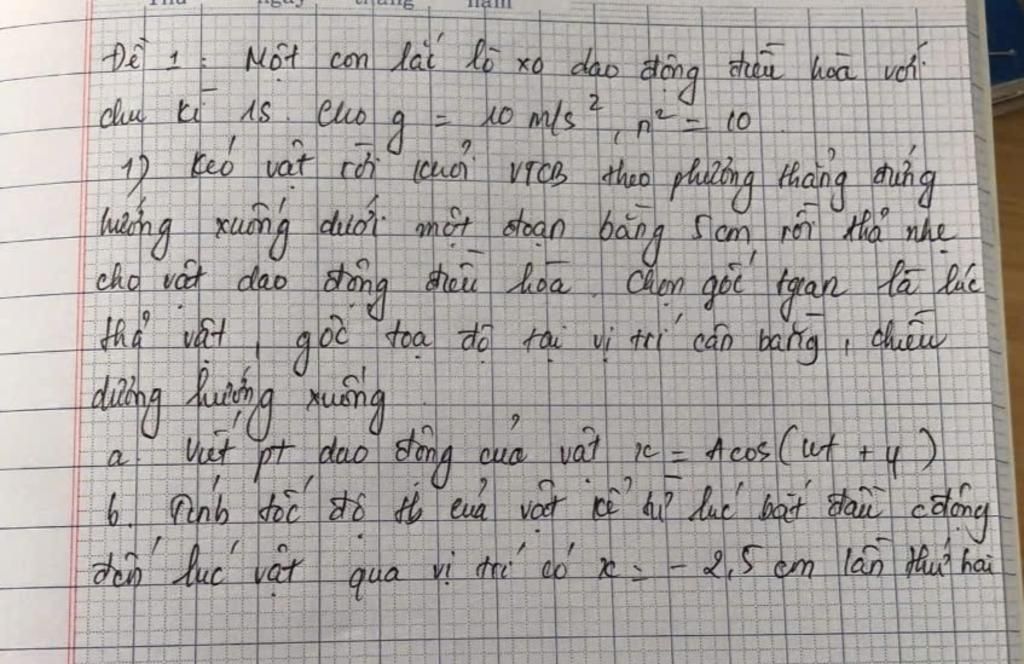 `to` Pha ban đầu của vật là `varphi_0 = 0 (rad)` và biên độ dao động là `A = x_0 = 5 (cm)`