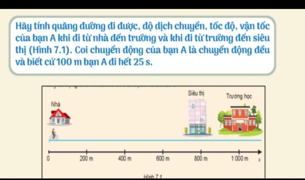- Thời gian đi: Bạn A đi với tốc độ 4 m/s, vậy thời gian đi từ nhà đến trường là: