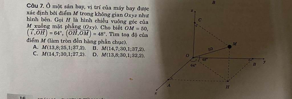 Câu 7. Ở một sân bay, vị trí của máy bay được