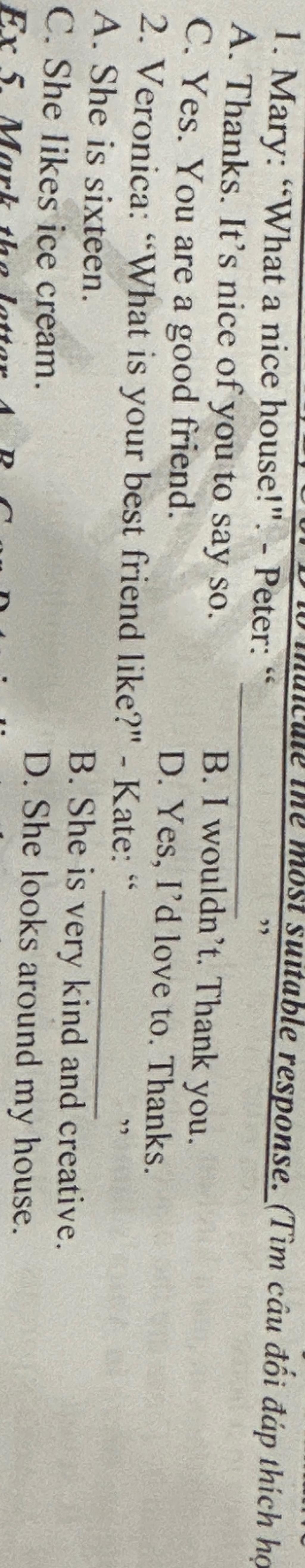 Mary:" Ngôi nhà thật đẹp!" - Peter :"Cảm ơn. Thật tốt khi bạn nói như vậy"