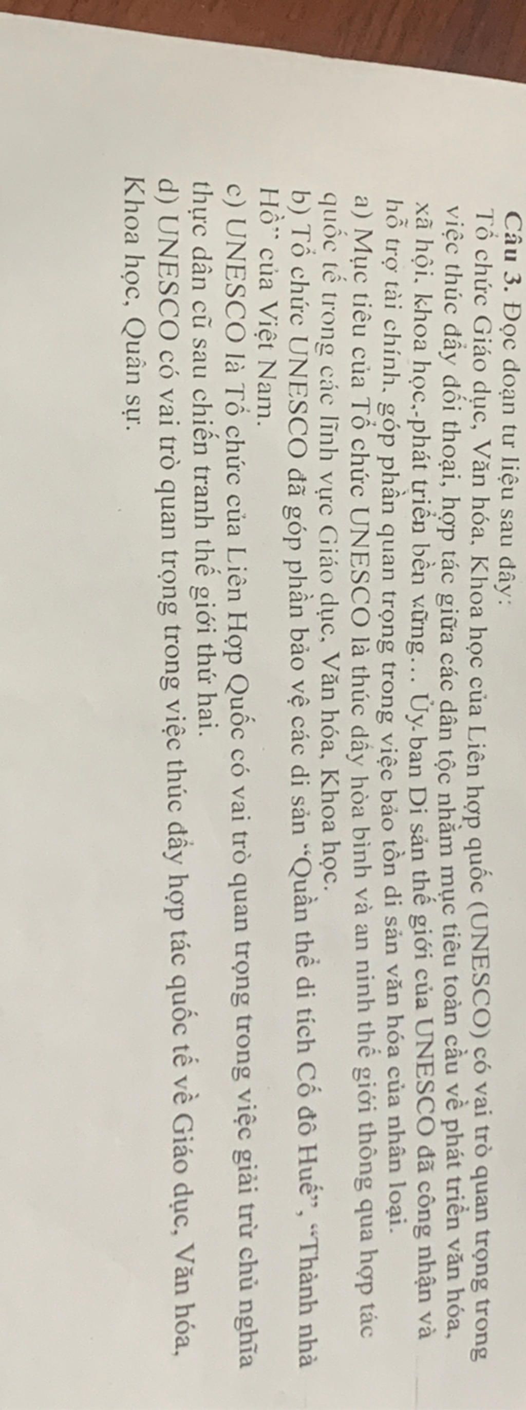c, sai ( vì tổ chức UNESCO góp phần quan trọng trong việc bảo tồn di sản văn hóa của nhân loại)