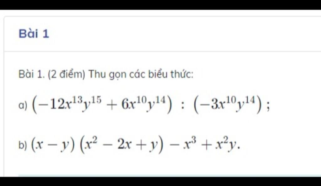 `a) (-12x^13y^15 + 6x^10y^14) : (-3x^10y^14)`