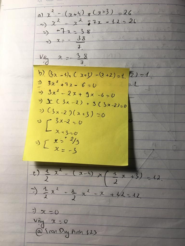 a. x² - ( x + 4 ) × ( x + 3 ) = 26