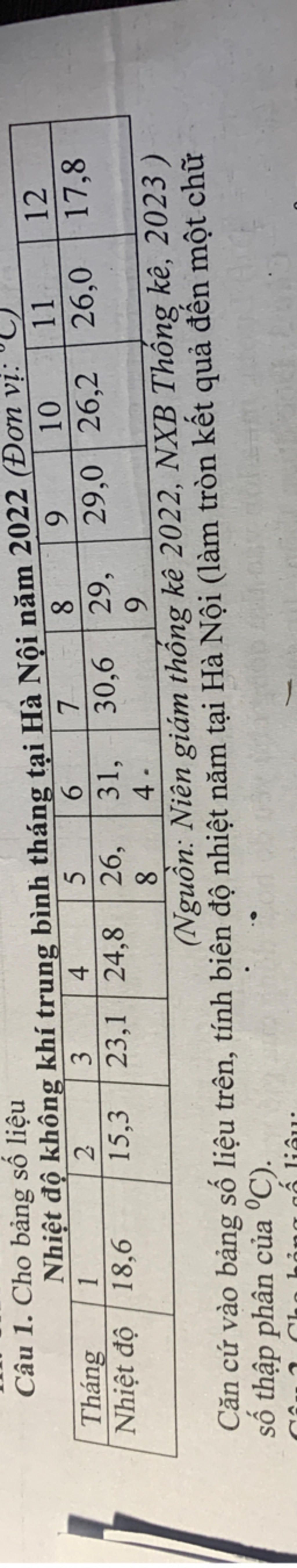 không khí trung bình tháng tại Hà Nội năm 2022 (Đơn vị: “)