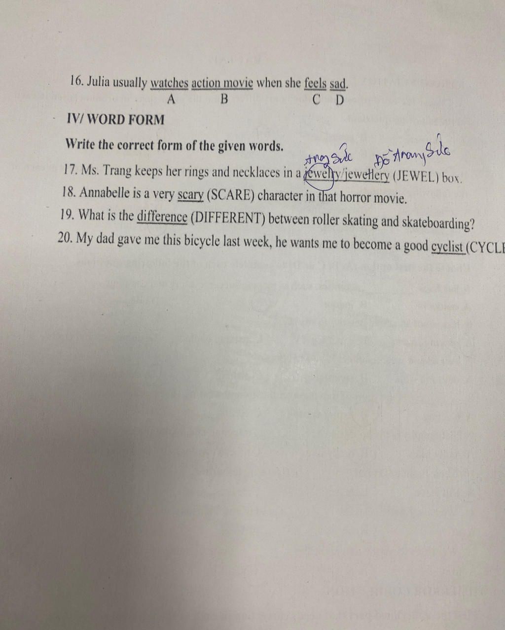 16. B (action movie ⇒ action movies)
