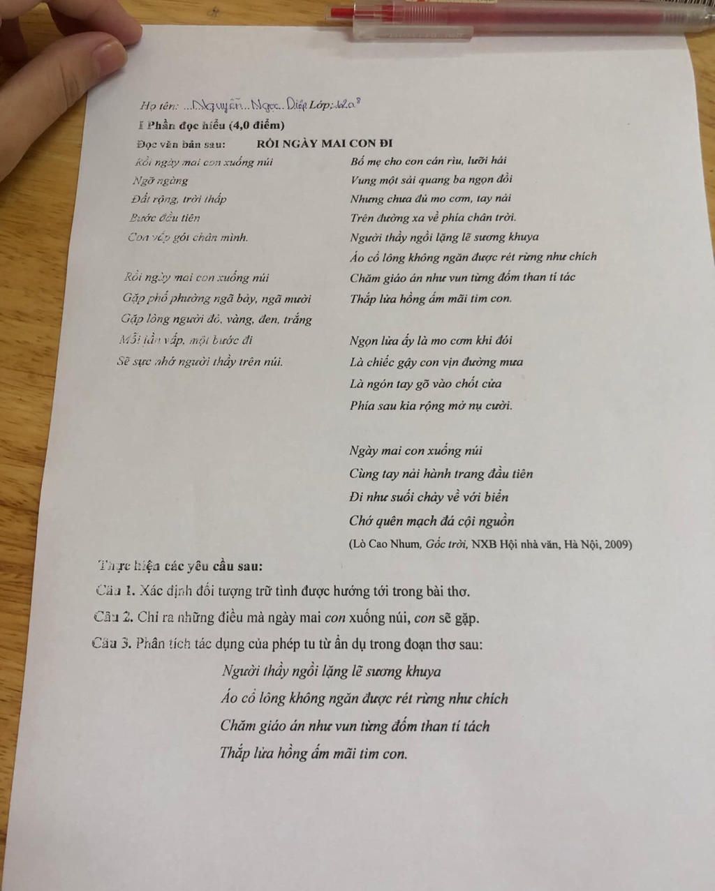 xác định đối tượng trữ tình được hướng tới trong bài thơ rồi ngày mai con đi