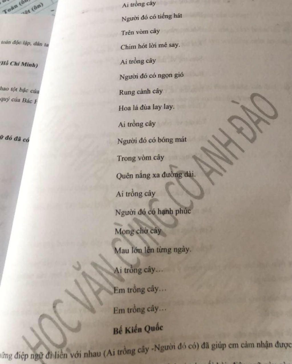 Những từ ngữ : "Ai trồng cây, Người đó có, Em trồng cây" được lặp đi lặp lại trong bài thơ như điệp khúc của một bài hát, có tác dụng nhắc nhở mọi người cần có ý thức trồng cây xanh và làm cho bài thơ rất dễ thuộc.