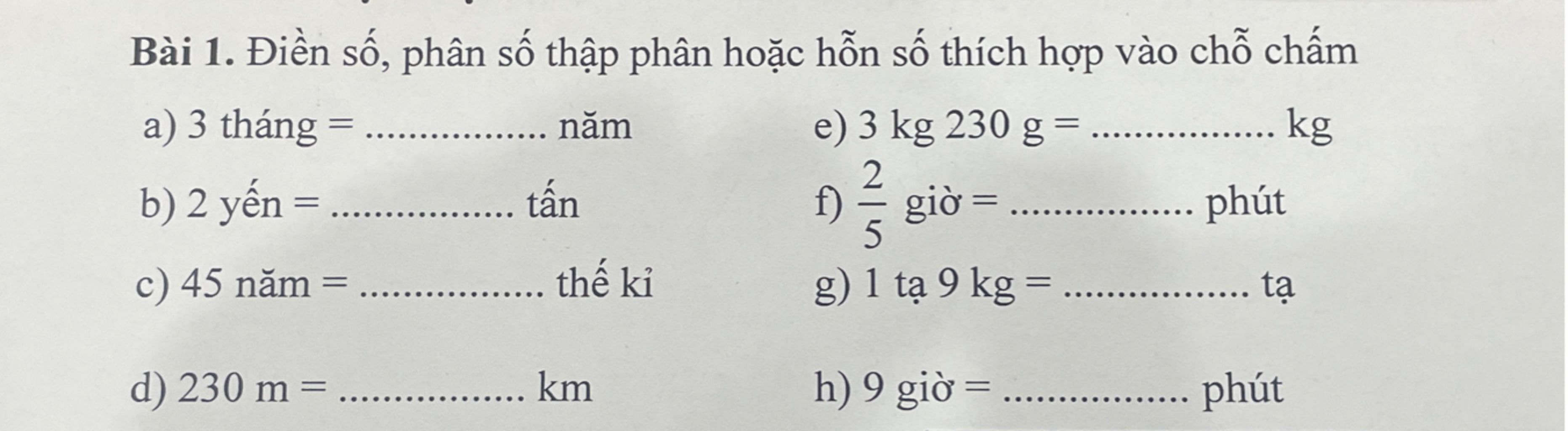 f.$\dfrac25$ giờ $= 24$ phút