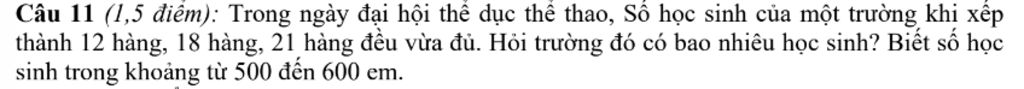 Gọi số học sinh của trường đó là `x` (học sinh) `(x in NN, 500 ≤ x ≤ 600)`