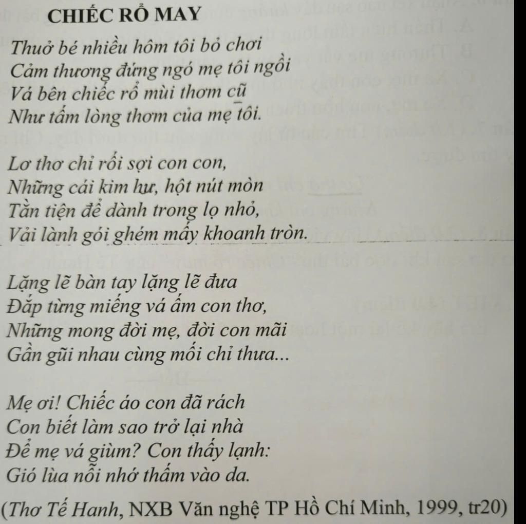 Viết đoạn văn bày tỏ suy nghĩ của em về bài thơ Chiếc rổ may của nhà thơ Tế Hanh.