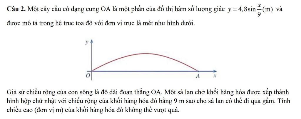 Câu 2. Một cây cầu có dạng cung OA là một phần của đồ thị hàm số lượng giác y=4,8sin (m) và