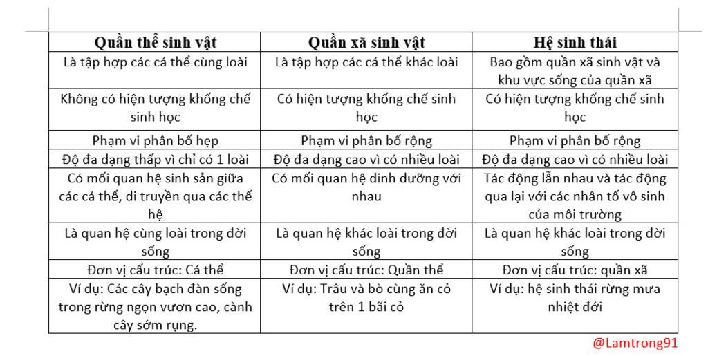 Câu 3: Phân biệt quần thể sinh vật, quần xã sinh vật và hệ sinh thái. Cho ví dụ minh họa