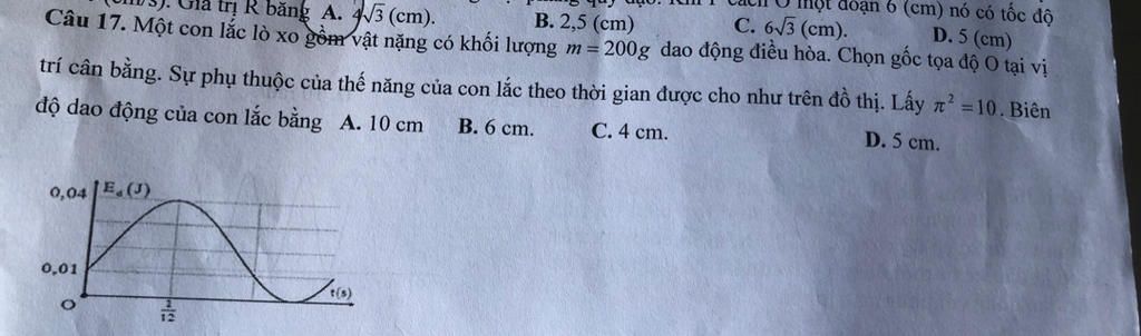\Rightarrow A = \dfrac{{{v_{\max }}}}{\omega } = 0,124\left( m \right)