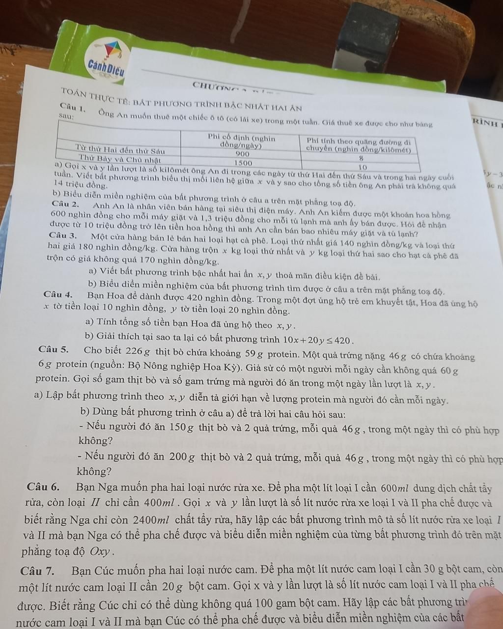 TOÁN THỰC TẾ: BẤT PHƯƠNG TRÌNH BẬC NHẤT HAI ẨN.