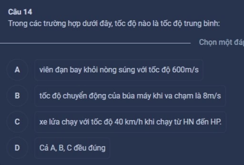 Xe lửa chạy với tốc độ 40km/h khi chạy từ HN đến HP là tốc độ trung bình, còn lại là tốc độ tức thời.