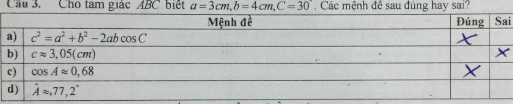 `->` a đúng, b sai, c đúng, d sai