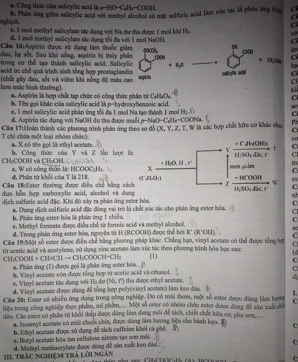 b. Phản ứng giữa salicylic acid với methyl alcohol có mặt sulfuric acid làm xúc tác là phản ứng thuê C