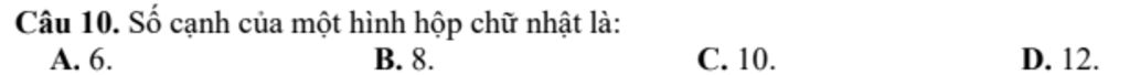 `=>` vậy số cạnh của một hình hộp chữ nhật là: `12`