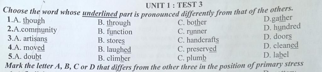 `1. B` (phát âm là /θ/ - còn lại là /ð/)