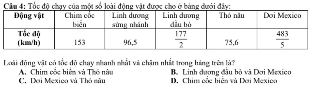 `+` Loài động vật có tốc độ chậm nhất là: thỏ nâu