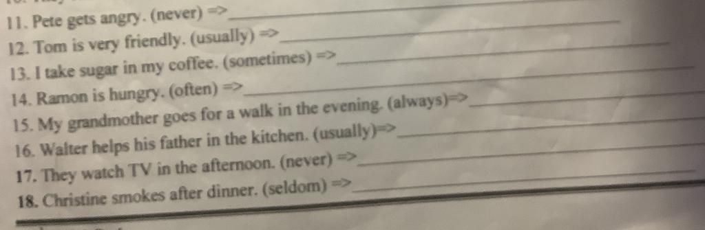 18.Christine smokes after dinner.(seldom)