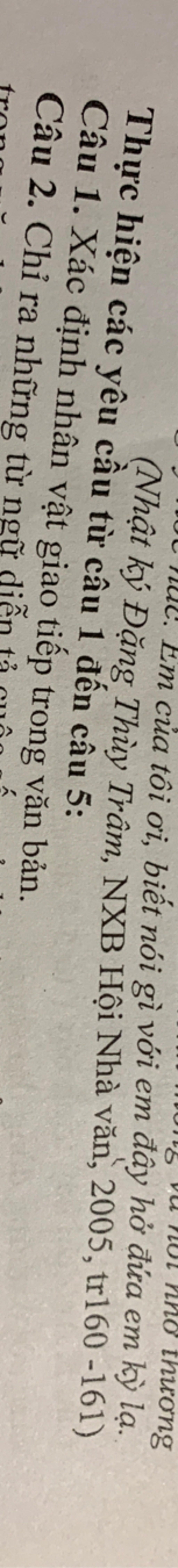 Trong tác phẩm "Nhật ký Đặng Thùy Trâm", nhân vật giao tiếp chính là Đặng Thùy Trâm, một bác sĩ trẻ tình nguyện vào chiến trường để phục vụ cho cuộc kháng chiến chống Mỹ.