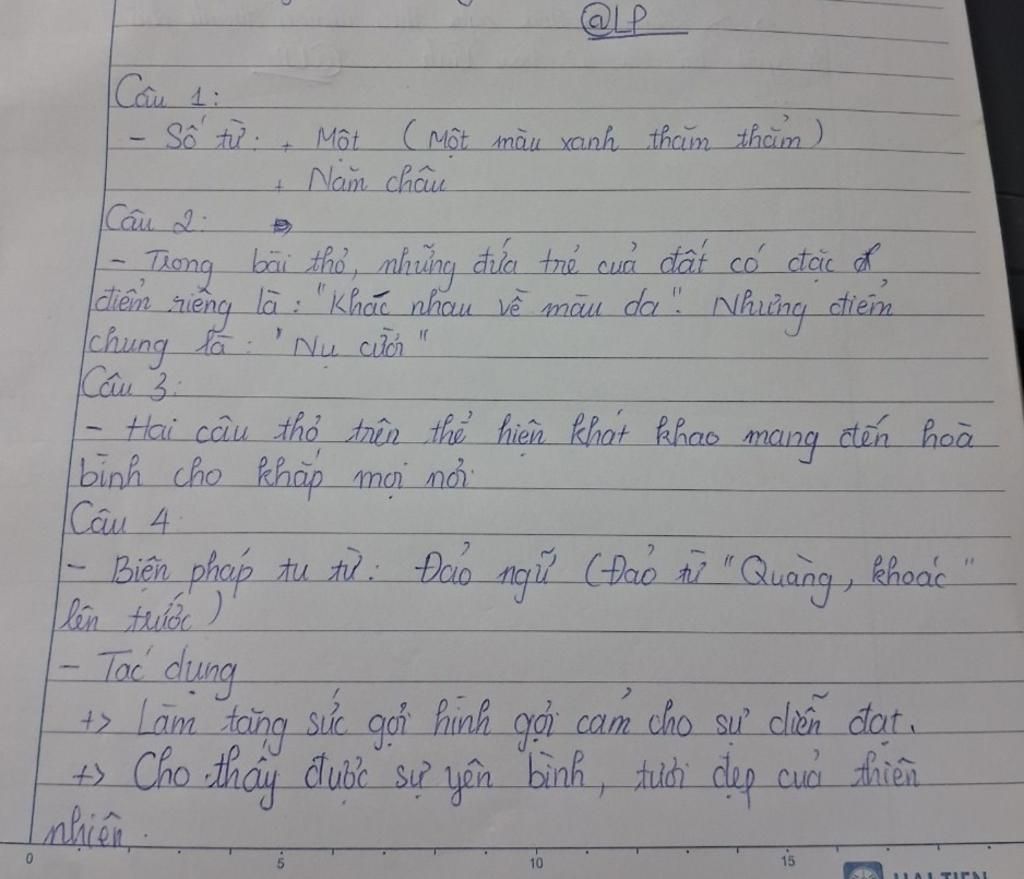Câu 5: Tại sao nhân vật "em" trong bài thơ lại có mong ước: "Mong trái đất hòa bình / Đừng bao giờ chiến tranh"