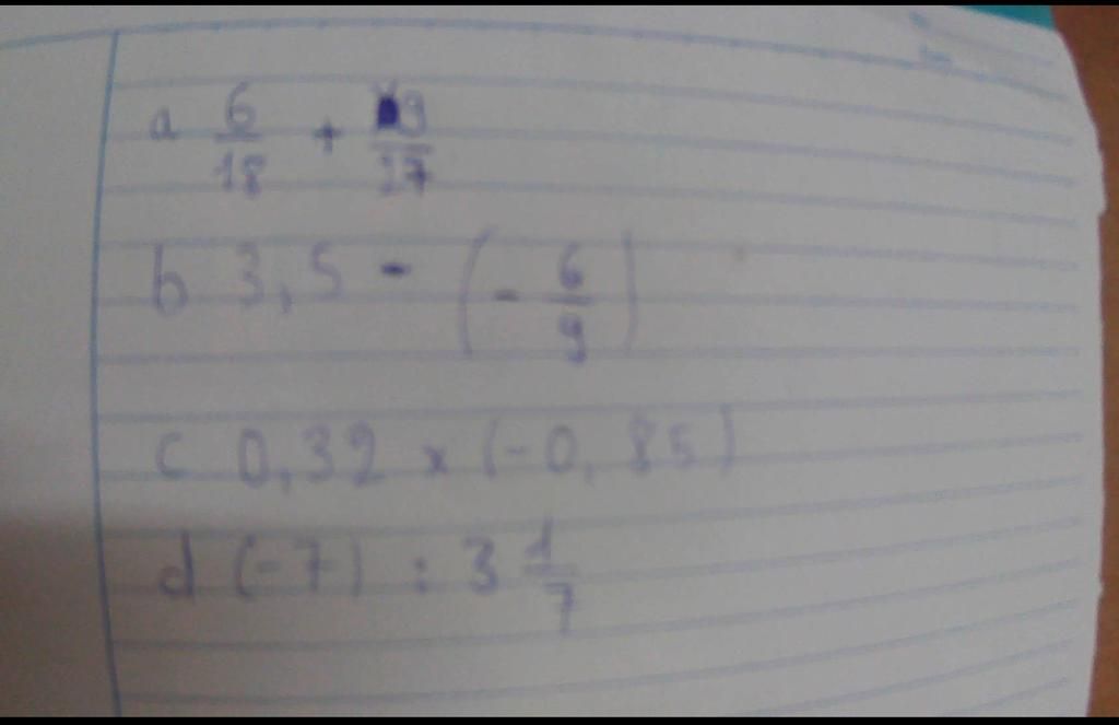 `b) 3,5 - (-6/9) = 7/2 + 6/9 = 7/2 + 2/3 = 21/6 + 4/6 = 25/6`