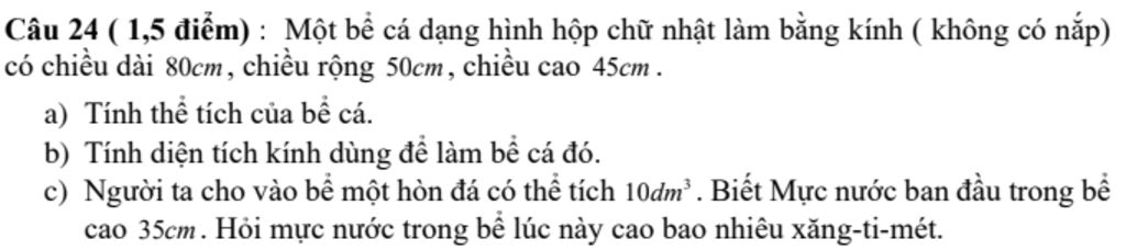 Mực nước trong bể lúc này cao số xăng-ti-mét là: