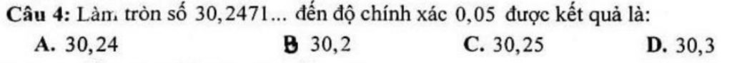 `-`Để làm tròn số `30,2471...` đến độ chính xác là `0,05` thì ta làm tròn đến hàng phần mười