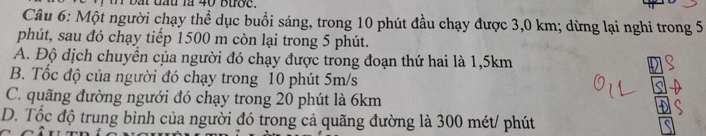 \({v_1} = \dfrac{{{s_1}}}{{{t_1}}} = \dfrac{{3000}}{{600}} = 5\left( {m/s} \right)\)