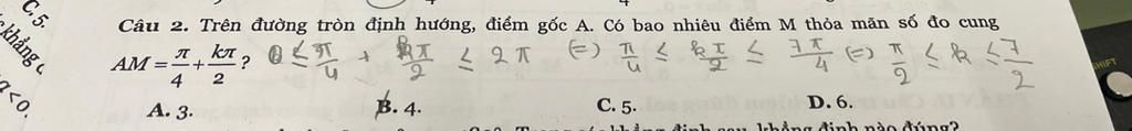 Hay `0 <= hat{AOM} <= 2pi <=> 0 <= pi/4 + (kpi)/2 <= 2pi`