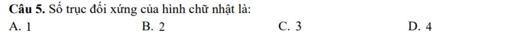`@` Hình chữ nhật có `2` trục đối xứng là `2` đường thẳng đi qua trung điểm `2` cạnh đối.