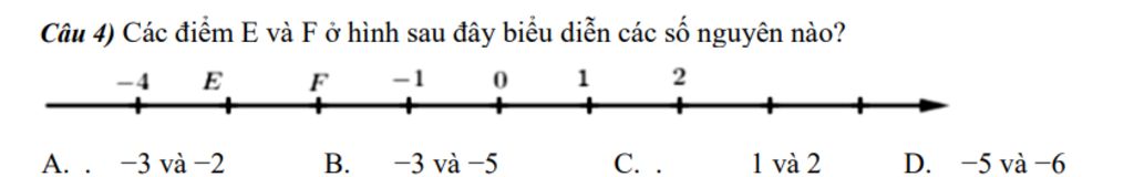 `=>` Điểm `E` biểu diễn số nguyên `-3`