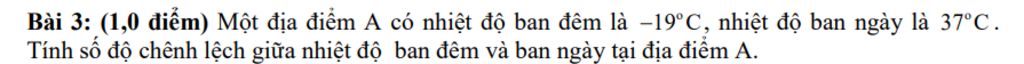 Vậy số độ chênh lệch giữa nhiệt độ ban đêm và ban ngày tại địa điểm `A` là `-56` độ `C`