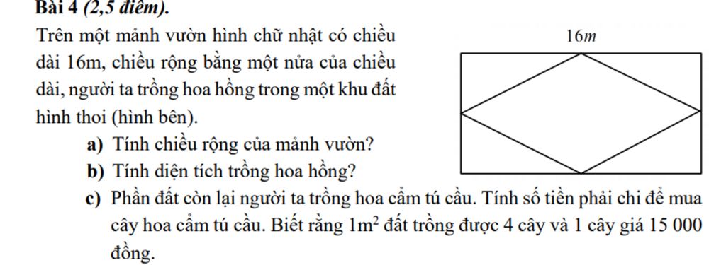 Diện tích trồng hoa cẩm tú là: