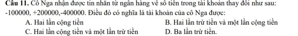 Khi đó: Tài khoản của cô được `2` lần trừ và `1` lần cộng tiền