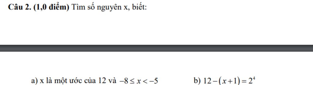Câu 2. (1,0 điểm) Tìm số nguyên x, biết: